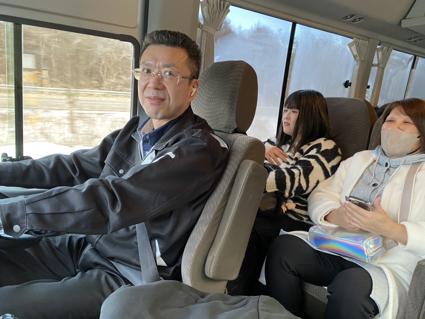 バスの中で各自盛り上がって和気あいあいでした。途中で輪厚に寄りトイレタイムです。